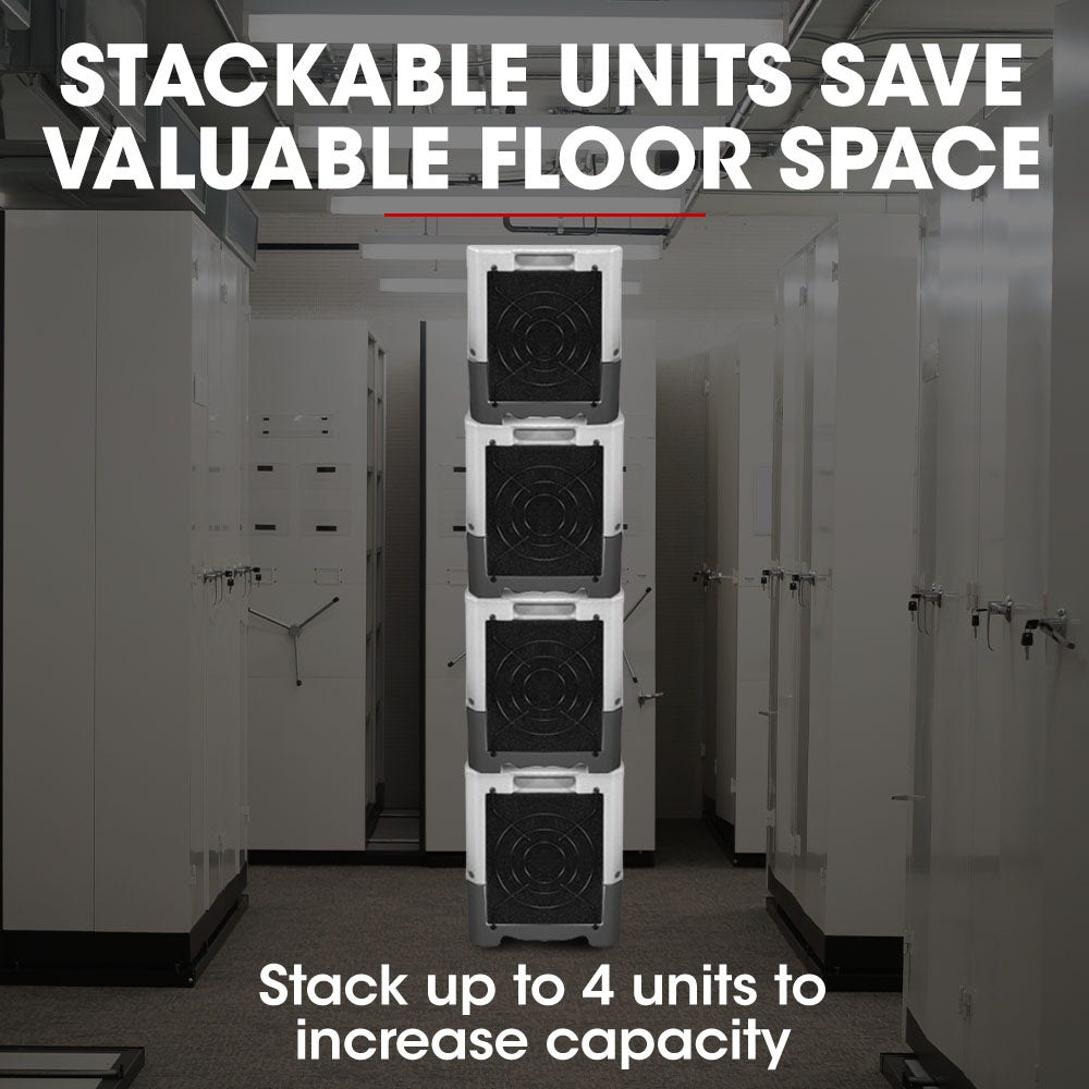 But that's not all - the Baumr-AG range boasts a range of user-friendly features, including a wheeled and stackable hard polymer shell, self-monitoring system, duct connection option, and automatic humidistat control with LED. It even has auto defrost and purging, digital humidistat, drain indicator, timer and money-saving washable filter.