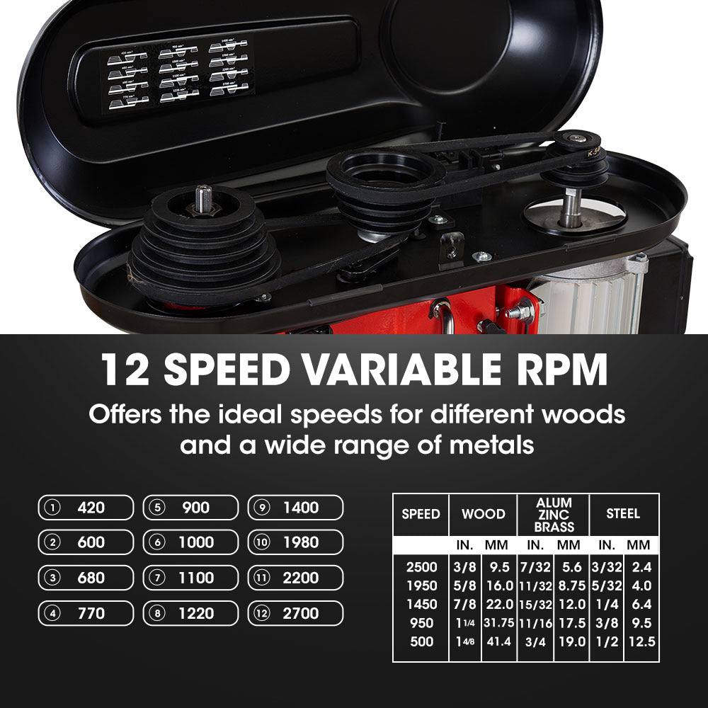- Variable Speeds (rpm): 420 / 600 / 680 / 770 / 900 / 1000 / 1100 / 1220 / 1400 / 1980 / 2200 / 2700