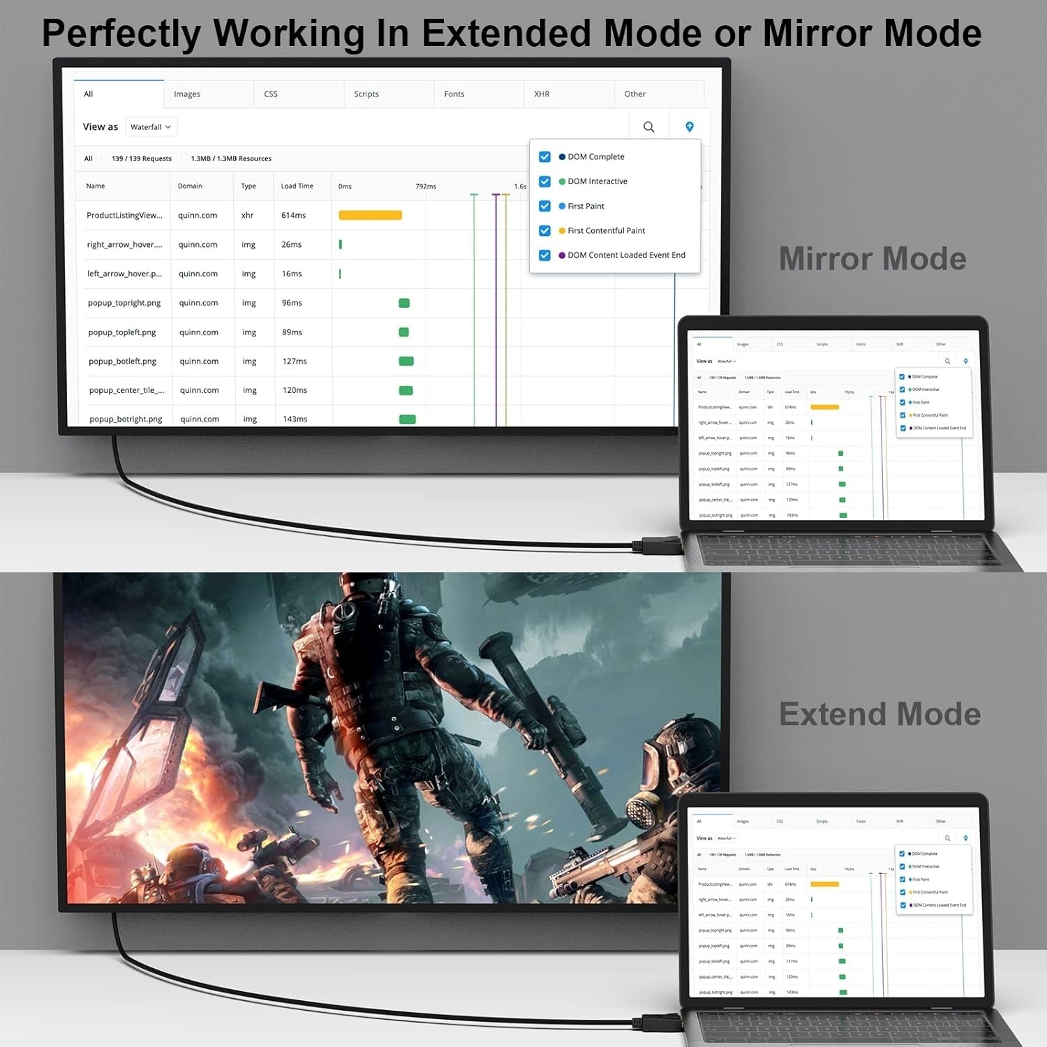Supports resolutions up to 1920x1080@60Hz (1080p Full HD) and is also compatible with 720p, 1600x1200, and 1280x1024, suitable for high-definition monitors and projectors. Gold-plated DisplayPort connector resists corrosion and abrasion to improve signal transmission, and molded strain relief enhances cable durability.