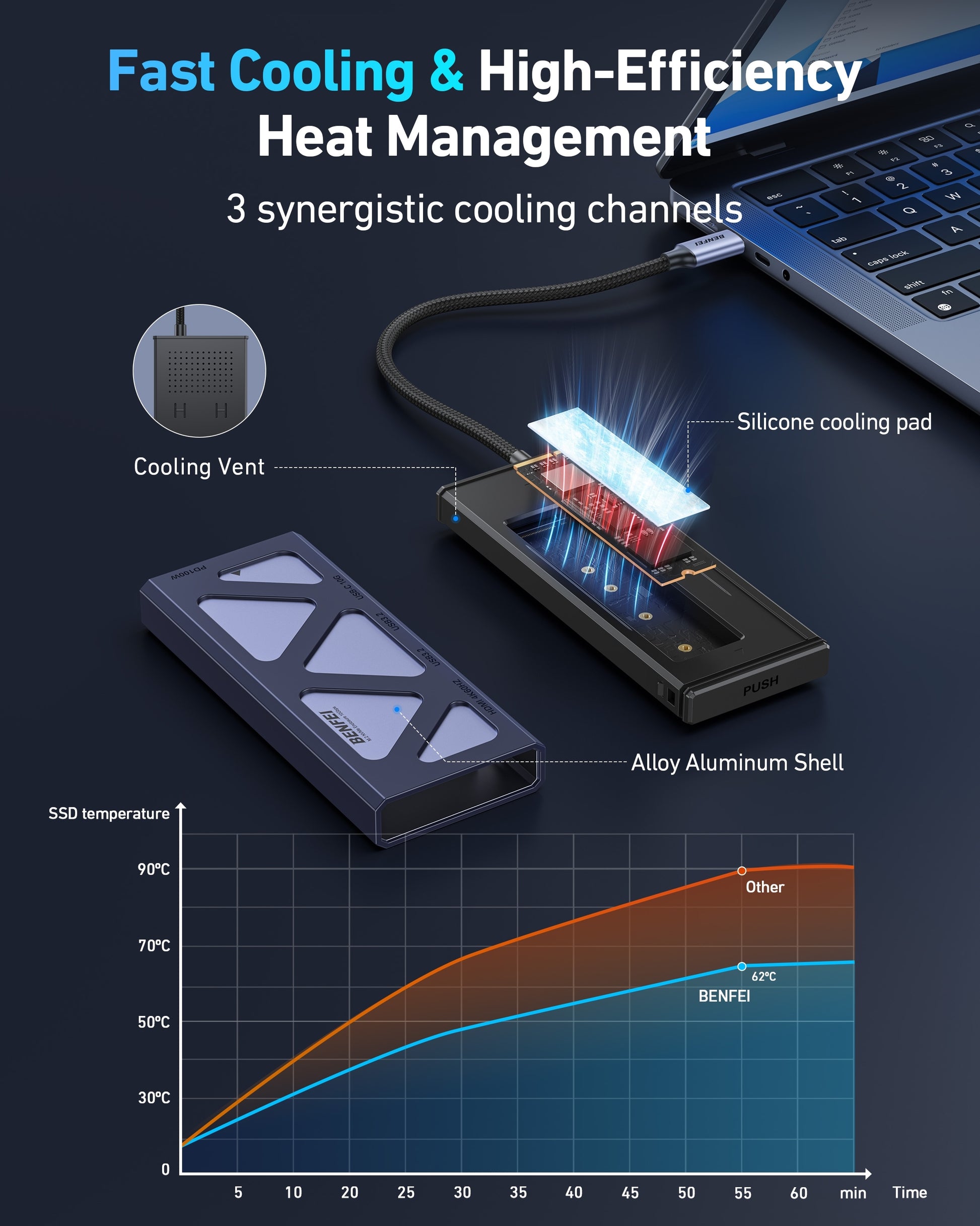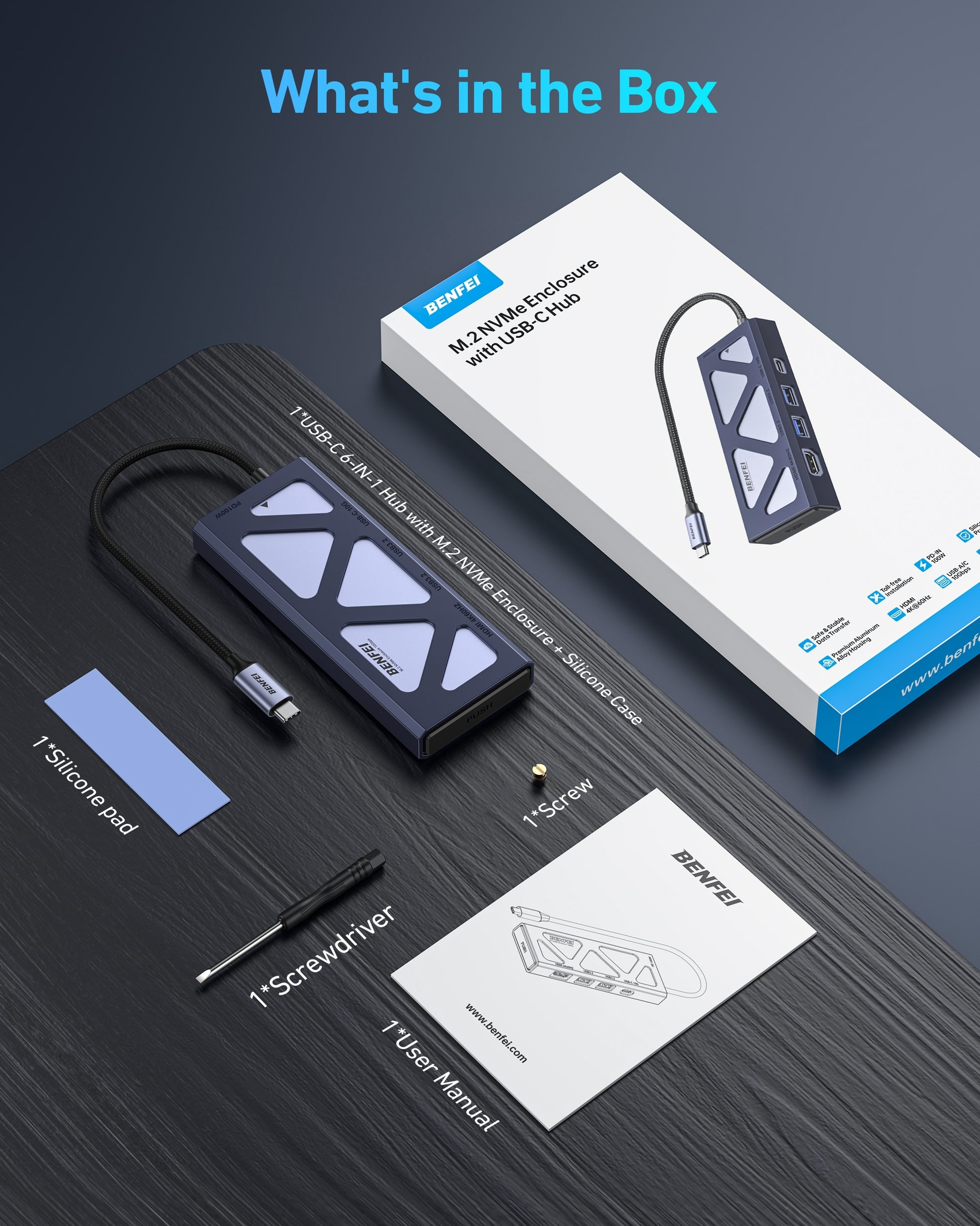 BENFEI 000389GY M.2 NVMe Enclosure with USB-C Hub