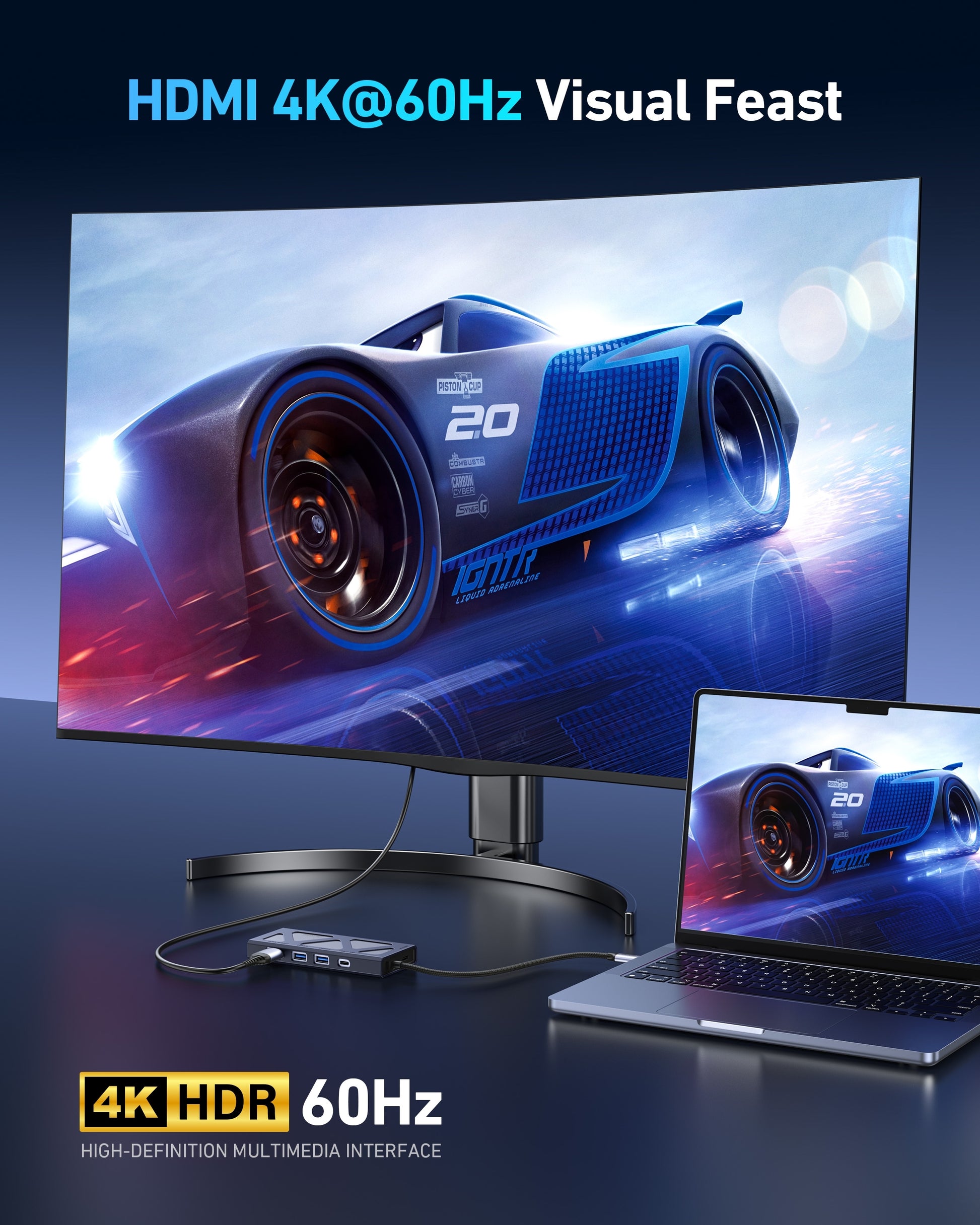 All-in-one 2-in-1 design: functions as a high-speed USB-C hub and an M.2 NVMe SSD enclosure, saving space and cost. Expand connectivity and storage with 2USB-A, 1USB-C (10Gbps), 100W PD charging, 4K@60Hz HDMI, and an M.2 NVMe SSD slot (supports 2230/2242/2260/2280).