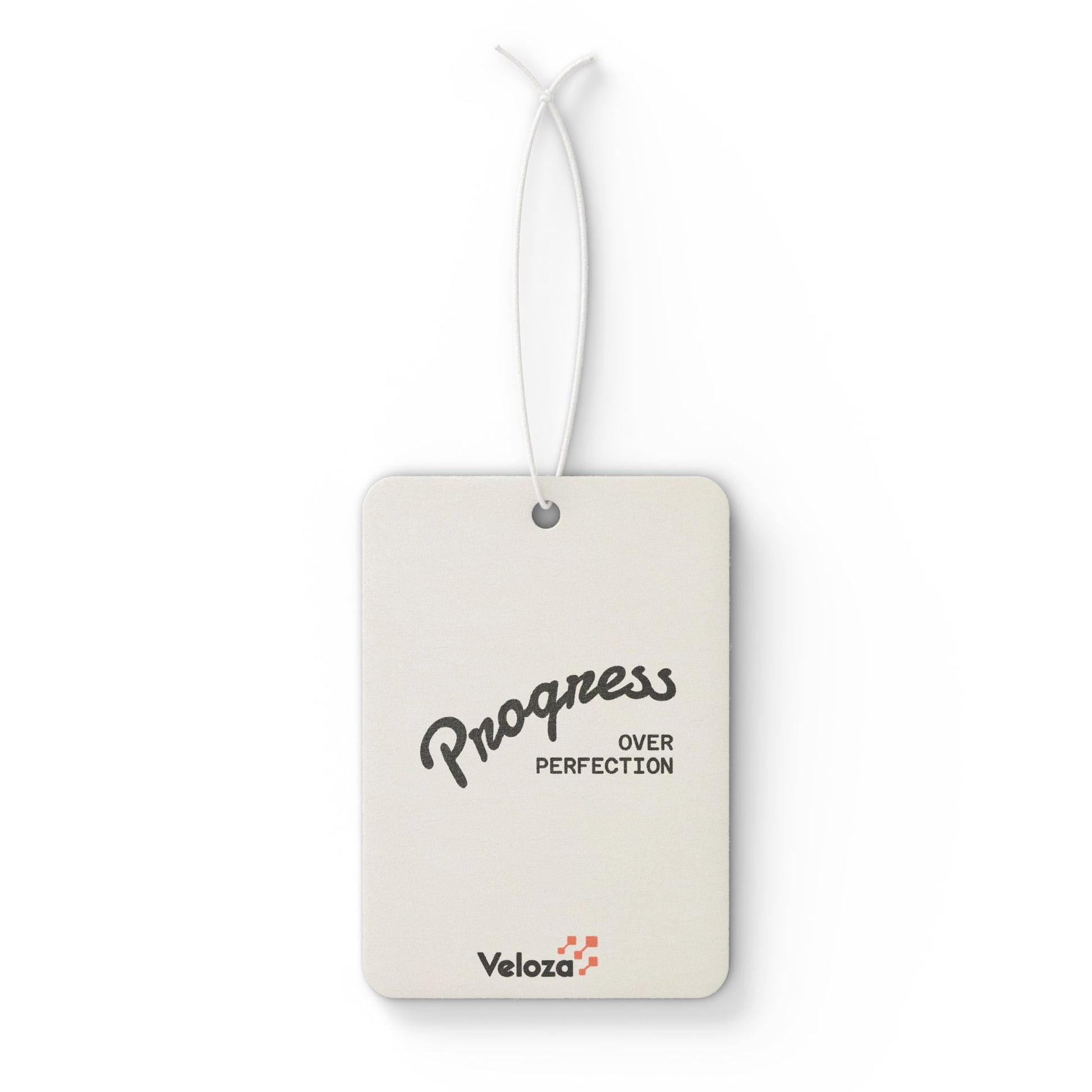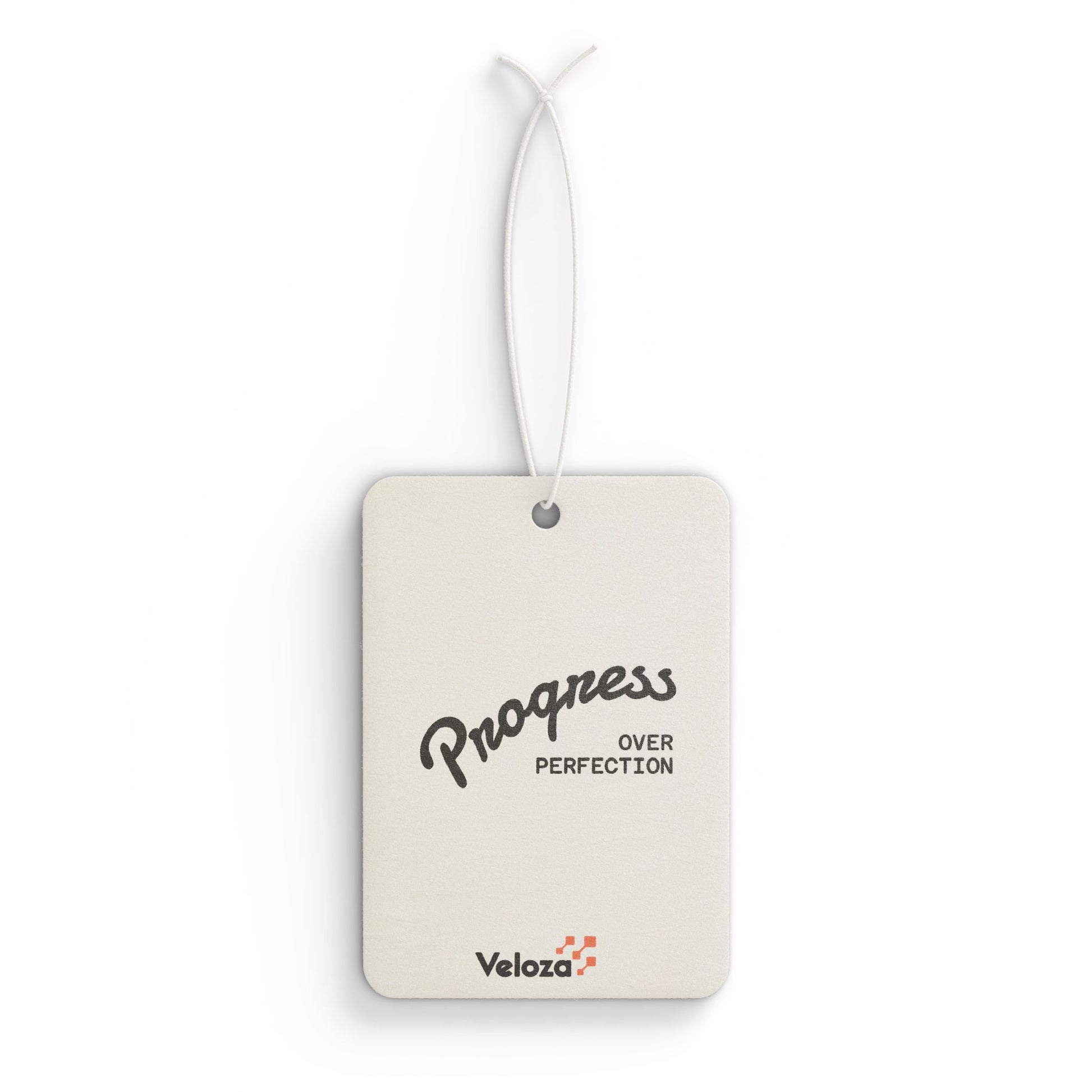 Freshen drives with a thoughtful, understated scent strip that reads "Progress Over Perfection." Lightweight and simple, it hangs from the rearview to lend calm confidence to every commute. Choose between crisp New Car notes (fruity green, ylang, leather, muguet, apple), woodsy Pine (balsam fir, apple, herb greens), or the cool Bright Black Ice blend (lime, lemon, pineapple). The design appears on both sides and the neutral, vintage-inspired typography pairs with any interior — a small reminder to keep moving forward while your car fills with a steady, pleasant aroma.