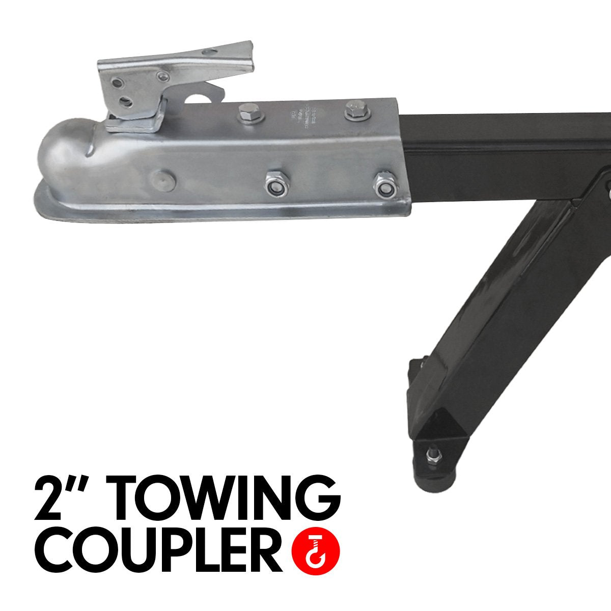 This unit is perfect for use on a weekender or a rural property. Positioning this unit is easy. Simply pick one end up by the handle and the unit tips back onto its wheels - 12 inch tyres.