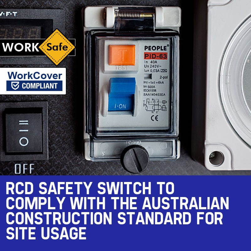 With an RCD Safety switch and external earth point, the GX12025i is WorkCover compliant. Meeting the Australian Construction Standard, this WorkSafe spec model is ideally suited to providing dependable power to construction and mining sites, trade shows and special events. It’s simple for anyone on site to get it going thanks to a convenient starting guide and the ease of push button Electric Start.