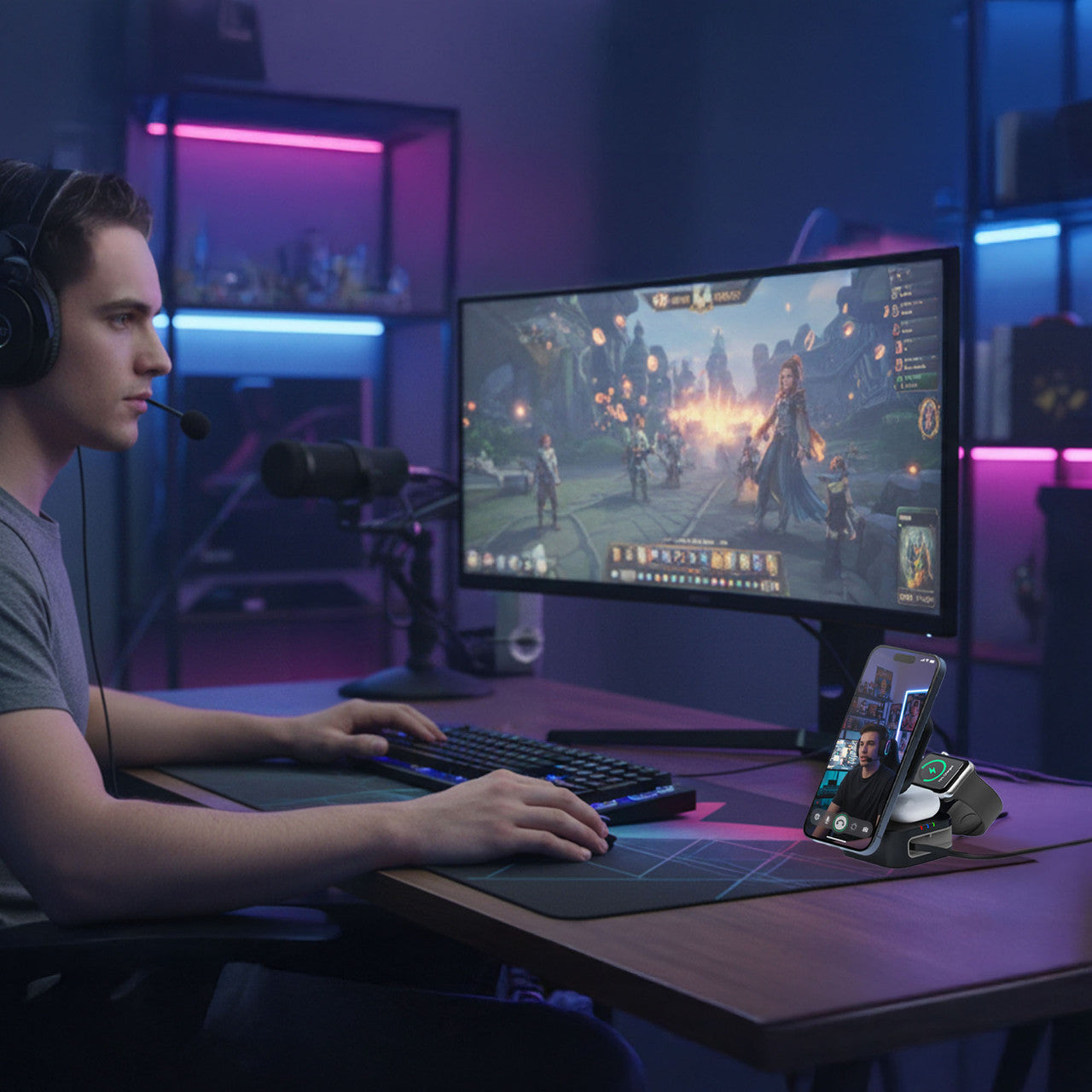 Meet the ChargeCore 3-in-1 Foldable Wireless Charger with Retractable USB-C Cable - the all-in-one solution for people who expect more from their everyday tech. Whether youre travelling, working or winding down, it delivers fast, seamless power to your phone, watch and earbuds in one elegant hub.