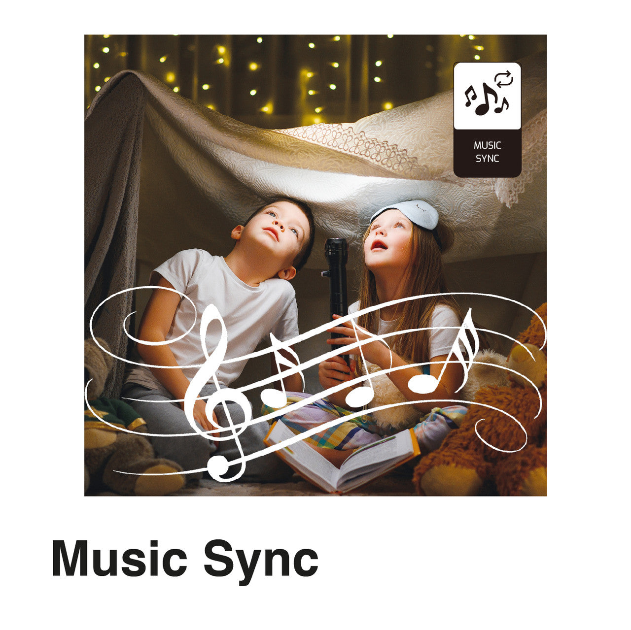 - Music Sync â Watch as the light colours dance to the rhythm of the music.