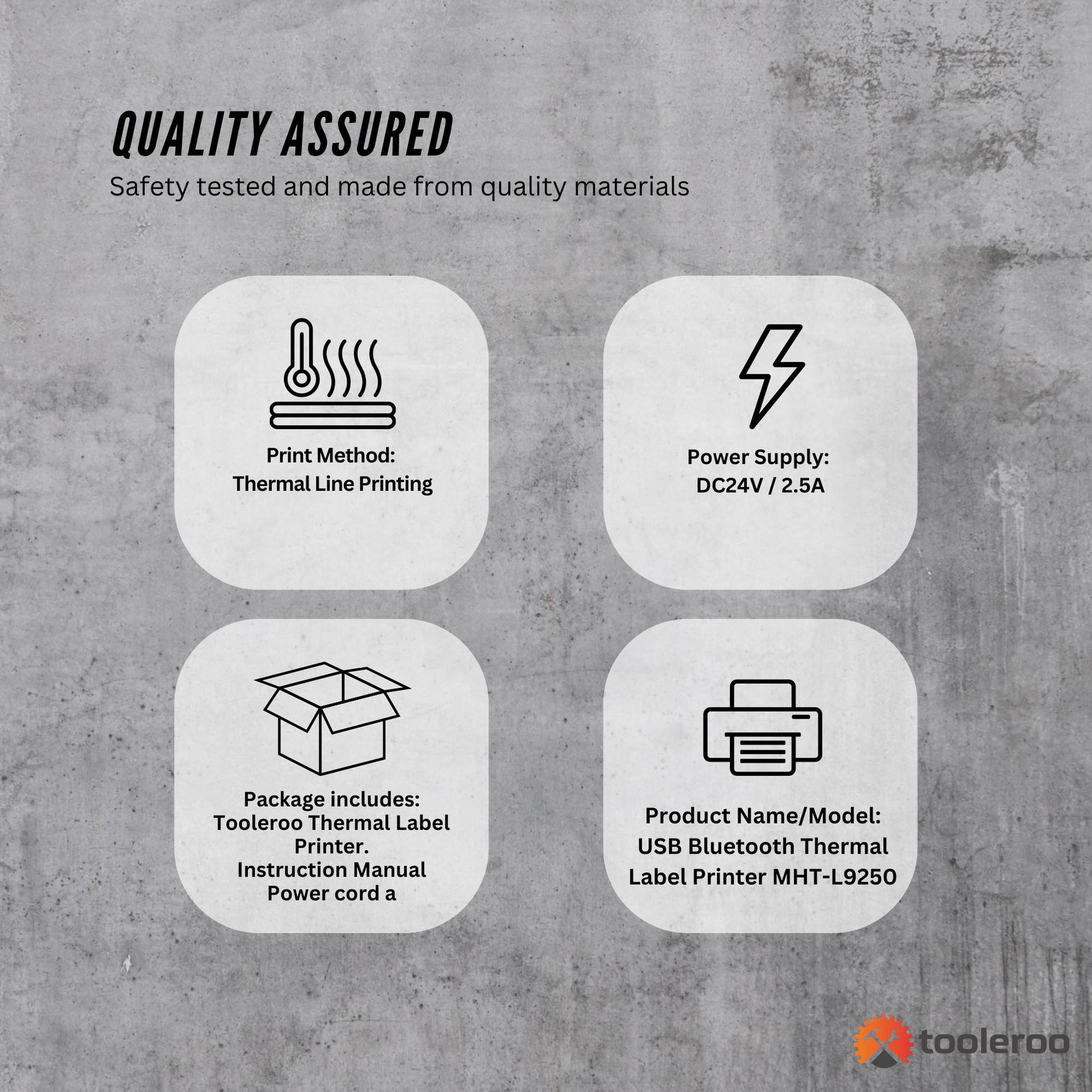 Tooleroo Bluetooth Thermal Label Printer - USB POS Receipt Shipping Printing
