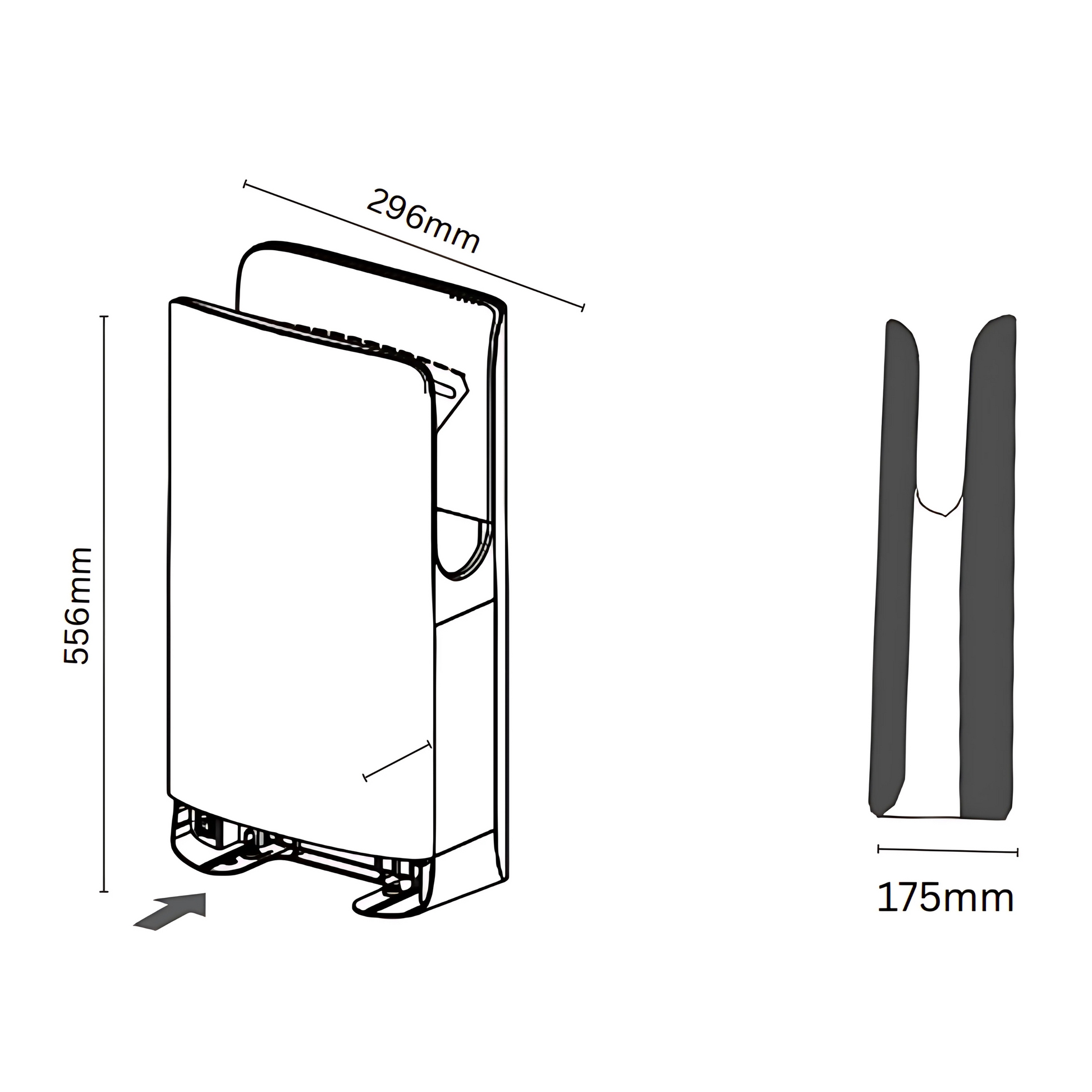 - Dimensions: 556mm (H) x 296mm (W) x 175mm (D)