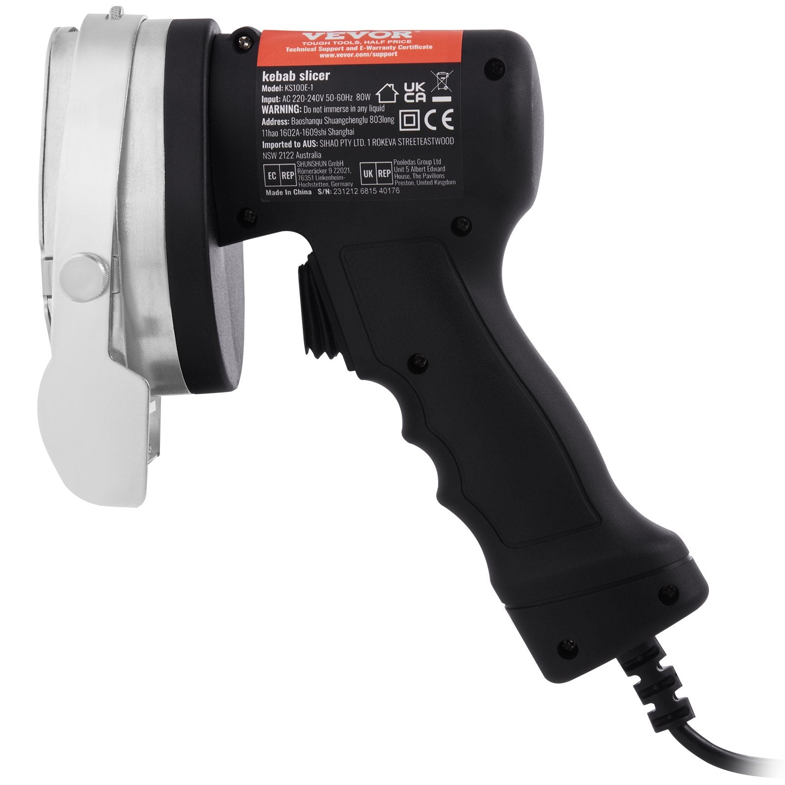 VEVOR Electric Shawarma Knife, 80W Professional Turkish Kebab Knife, Commercial Stainless Steel Gyro Cutter, Doner Kebab Meat Slicer with 2 Blades, 100mm Blade Diameter, 0-8mm Adjustable Thickness